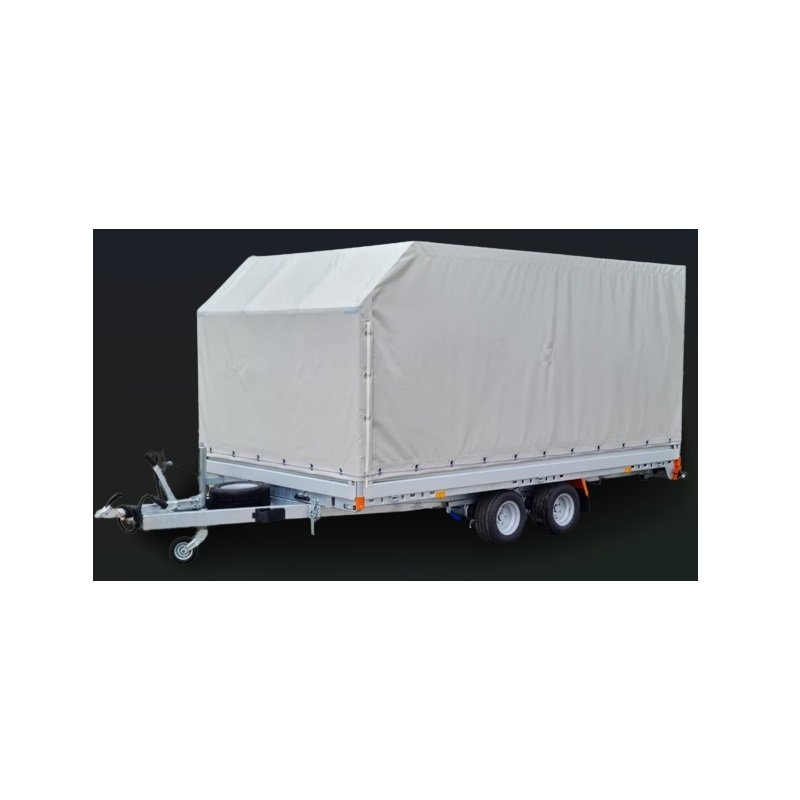 Bâche haute ouvrable sur les 4 côtés hauteur 1,80m avec pan cassé sur l’avant pour remorque GRAVITY longueur 5,00m
