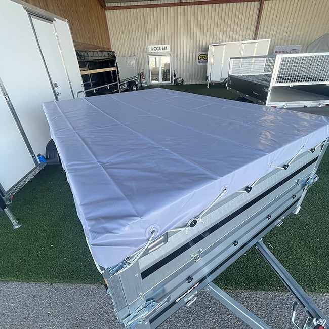 La bâche plate permet de protéger votre chargement des intempéries et des regards lors de vos déplacements. Elle est ici présentée sur les rehausses pleines
