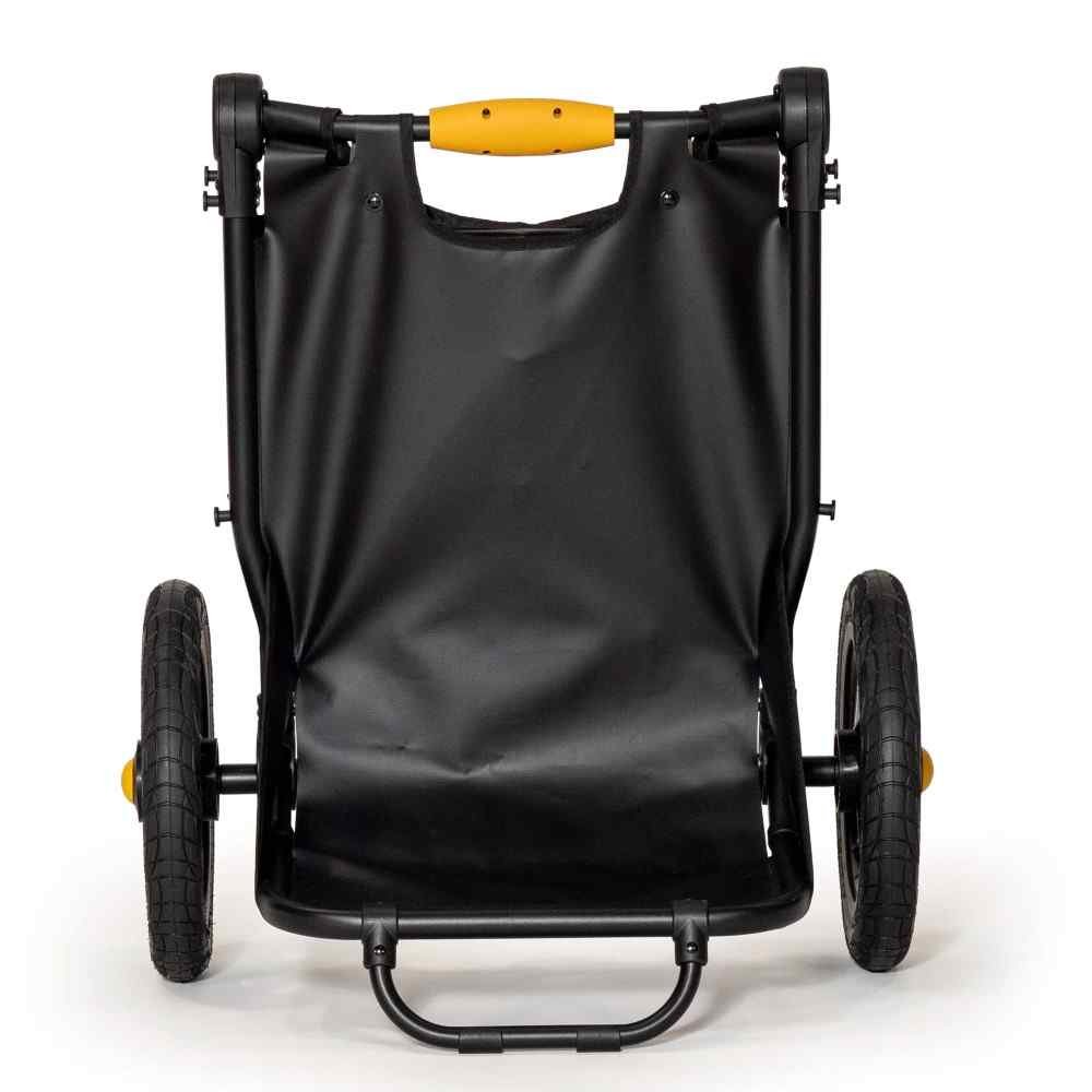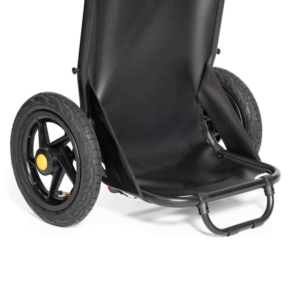 Fabriquée en matériaux résistants, cette remorque supporte une charge maximale de 27 kg sans compromettre la stabilité. Ses roues robustes garantissent une bonne adhérence sur différents terrains, tandis que sa structure noire élégante résiste aux intempéries. Ainsi, elle convient aussi bien pour un usage urbain que pour des sorties en nature.