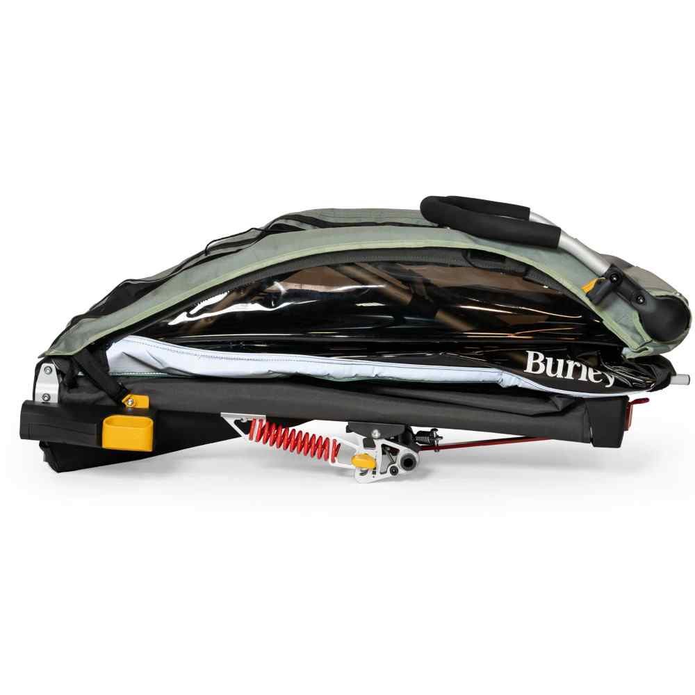 La Burley D’Lite X Single se distingue par son design soigné et ses finitions haut de gamme. Son cadre en aluminium assure une excellente résistance tout en restant léger pour une maniabilité optimale. Le coloris sage green/charcoal apporte une touche moderne et discrète, adaptée à tous les styles. L’assise spacieuse et le sol en tissu offrent un confort maximal pour l’enfant. De plus, la hauteur de plafond généreuse permet une bonne aération et une liberté de mouvement. Les sangles réglables sécurisent l’enfant sans le gêner. Enfin, la remorque s’intègre parfaitement à tous types de vélos grâce à son attache universelle.