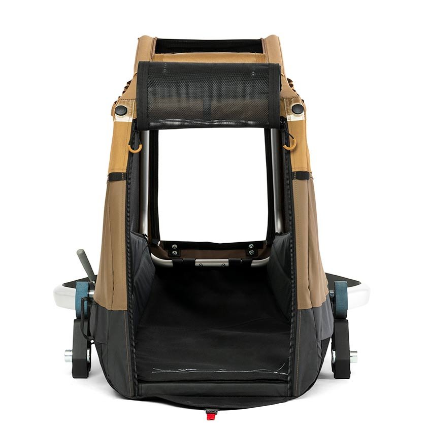 Remorque pour vélo pour le transport de chiens de taille moyenne jusqu’à 35 kg. Avec suspension Croozer AirPad®, pneus adaptés au tout-terrain et système de pliage confortable.
