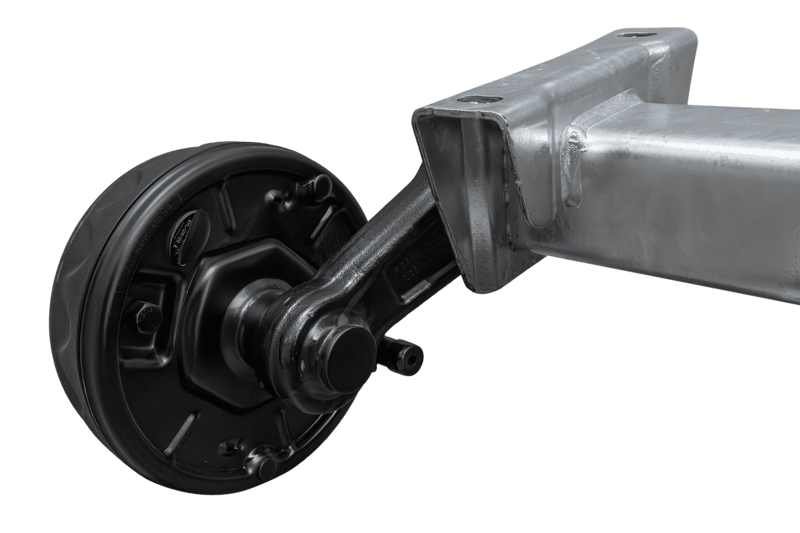 Une protection anticorrosion avancée garantit une durabilité et un aspect esthétique à long terme. Le profil de l’essieu est galvanisé à chaud, ce qui offre une protection complète contre la rouille et les intempéries, même dans les conditions les plus exigeantes. Dans le même temps, le moyeu de frein est protégé par un revêtement KTL (cataphorèse) de haute qualité, connu pour son excellente adhérence et sa résistance aux dommages mécaniques. Cette méthode de protection de surface en deux étapes prolonge non seulement considérablement la durée de vie de l’essieu, mais minimise également le besoin de maintenance, ce qui se traduit par des coûts d’exploitation réduits et une fiabilité pendant de nombreuses années d’utilisation.
