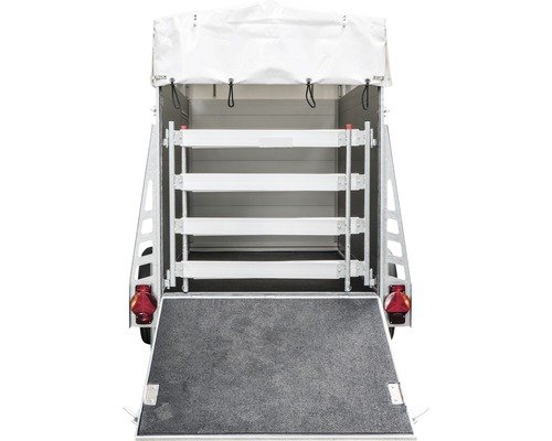 Avec des dimensions intérieures de 2 515 mm de longueur, 1 305 mm de largeur et 1 650 mm de hauteur, cette remorque offre un espace suffisant pour transporter plusieurs animaux confortablement. Les dimensions totales de 3 760 mm x 1 812 mm x 2 276 mm garantissent une stabilité optimale sur la route.