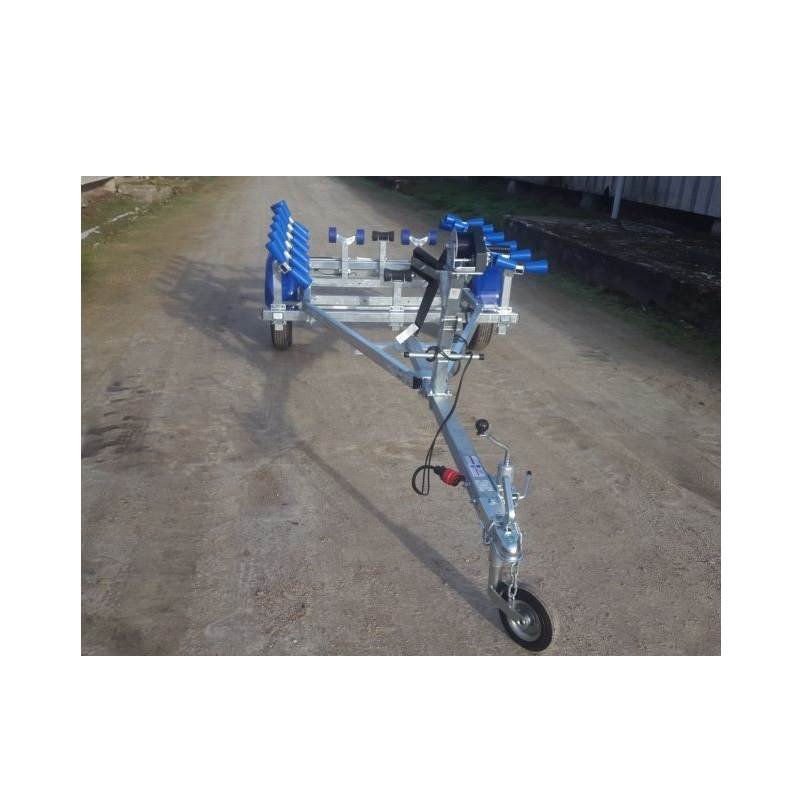 Ce porte bateau multi-rouleaux d’un PTAC déclassable de 500 Kg et d’une charge utile 360 Kg sera idéal pour transporter sur route votre bateau (coque en V, semi-rigide, dériveur intégral, coque rapide etc.) d’une longeur de coque maximale de 4.4 mètres.