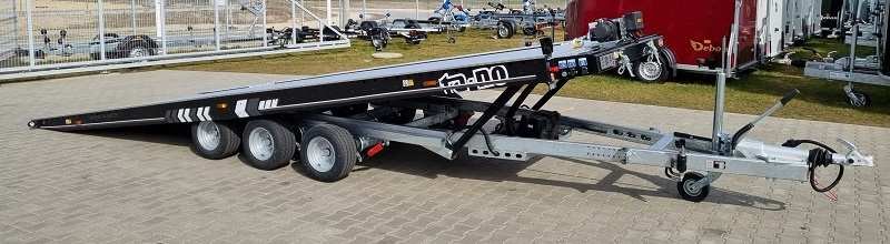 Les remorques FORMULA sont des remorques porte voiture basculante par vérin et centrale hydroélectrique ne nécessitant pas de rampes de chargement, le plateau pose au sol. Cette remorque est dédiée au utilisateurs les plus exigeants.