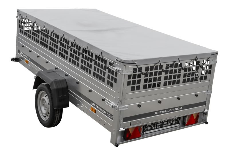 La remorque est richement équipée, l’ensemble comprend : roue de support, ridelles grillagées, bâche plate de couleur griseCôtés grillagés, c’est-à-dire doubles côtés augmentant la hauteur de chargement, galvanisés. Bâche épaisse plate grise, résistante à la déchirure et augmentant la protection des marchandises transportées.