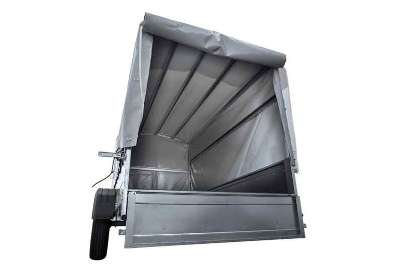 Remorque simple essieu nitrailer Garden Trailer 264 KIPP avec roue de support, cadre H-1100 et bâche grise