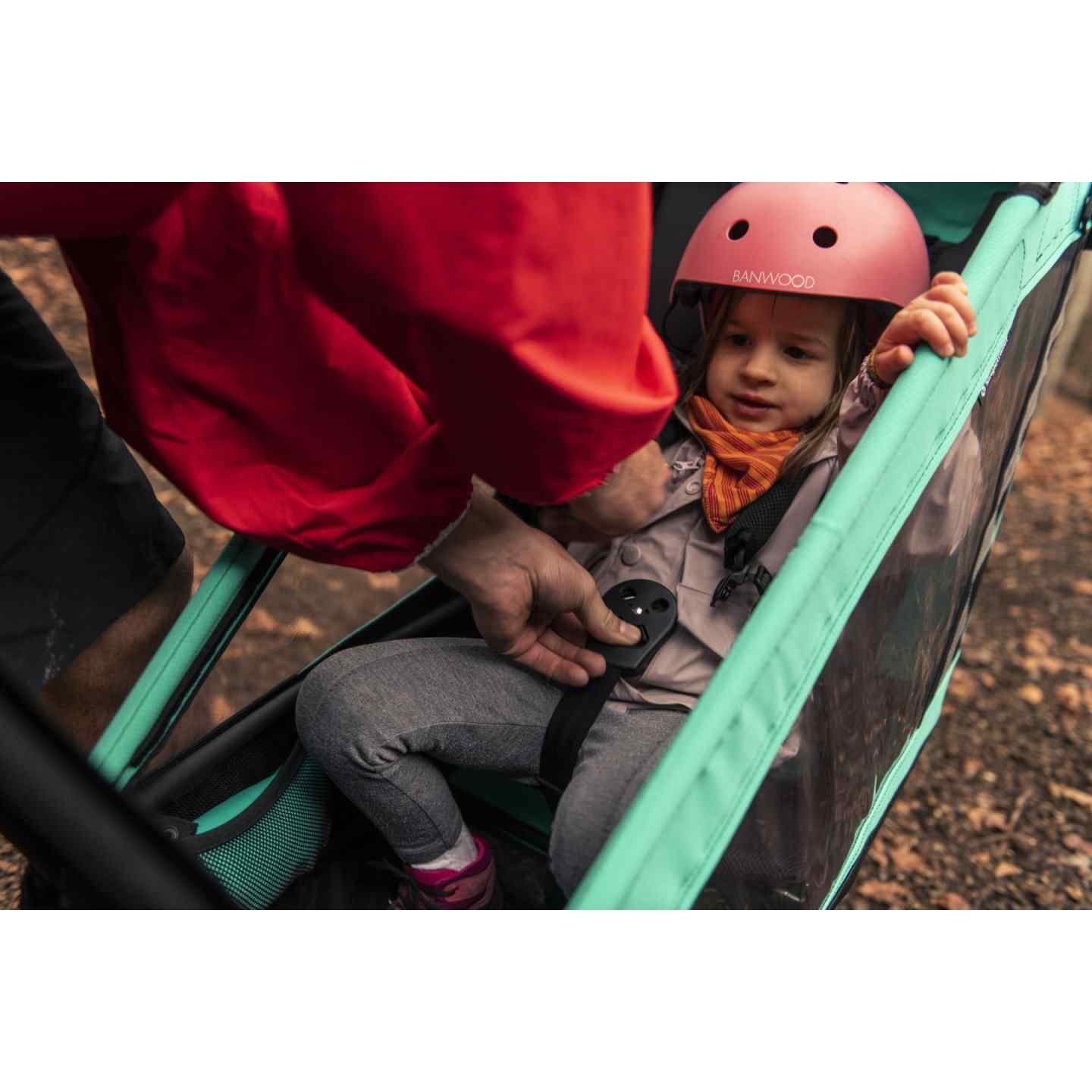 Le coloris Caribbean Green donne un style unique à cette remorque, parfaite pour les familles actives. La remorque inclut également un espace de rangement pour les affaires de l’enfant. Son montage rapide et son pliage compact facilitent son transport et son stockage. Enfin, la qualité allemande Tout Terrain garantit une durabilité exceptionnelle.